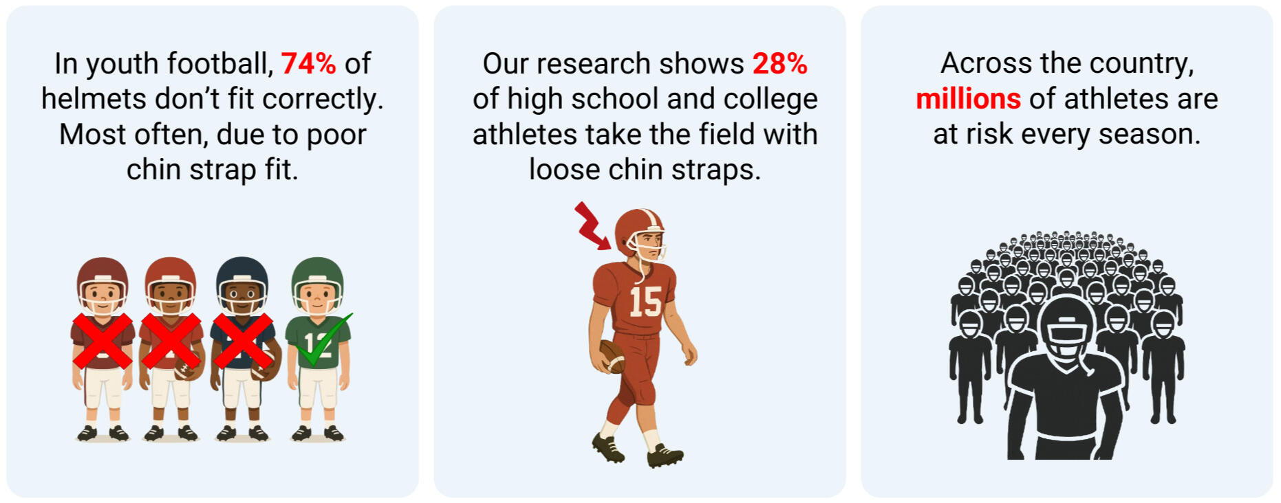 Until now, there’s been no way to know if a chin strap is properly secure. Saturn Sports™ is making helmet fit clear and consistent—giving coaches confidence, players focus, and parents peace of mind.